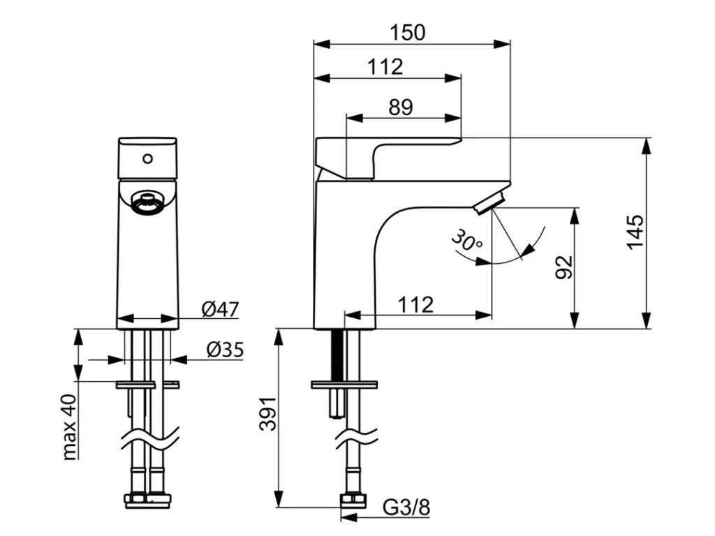 Pripojenie: flexibilné pripojovacie hadičky.