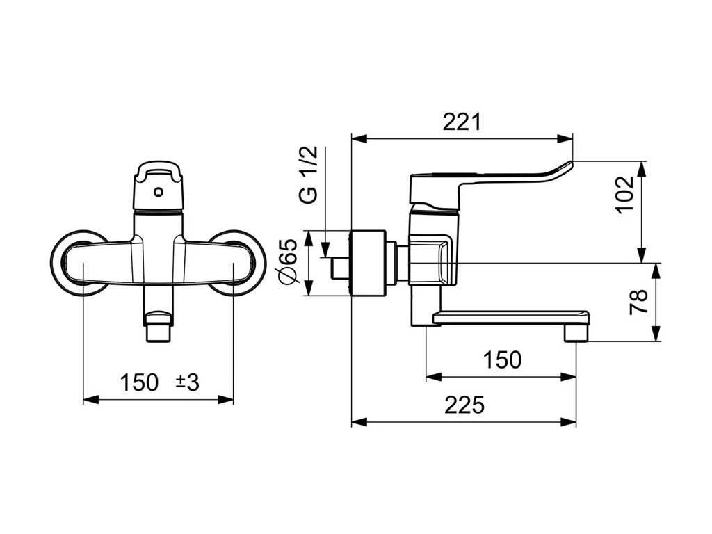 • vzdialenosť na inštaláciu: cca 150± 15 mm;