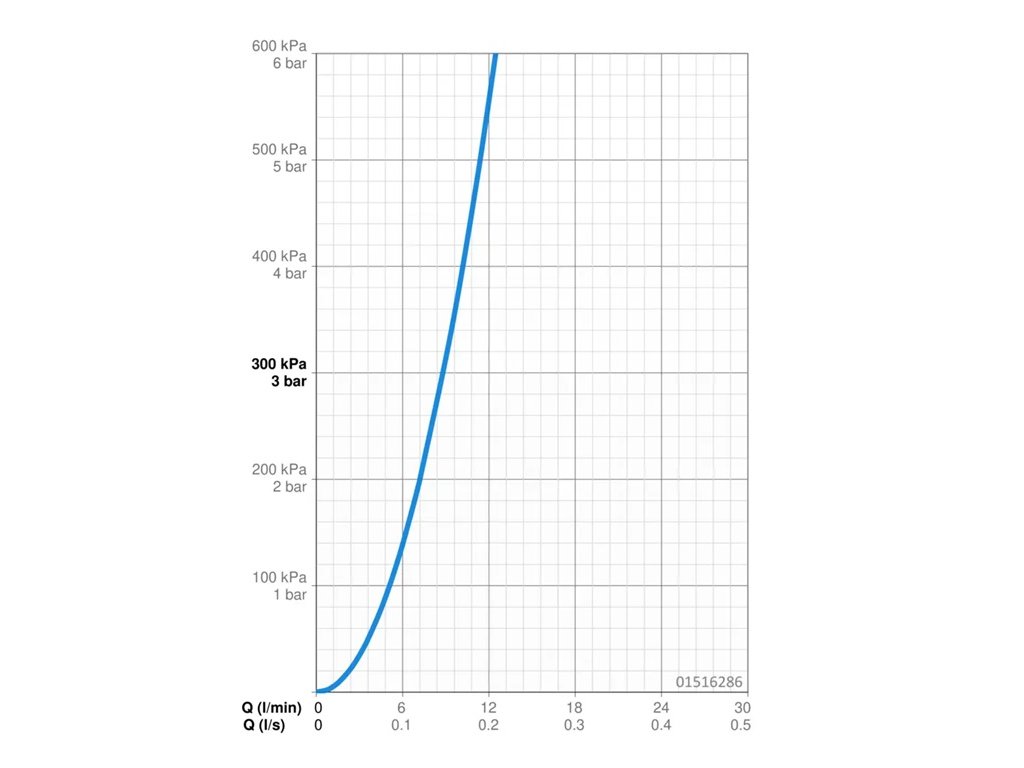 • prietok pri tlaku 3 bary (s obmedzovačmi prietoku): 8,82 l/min;