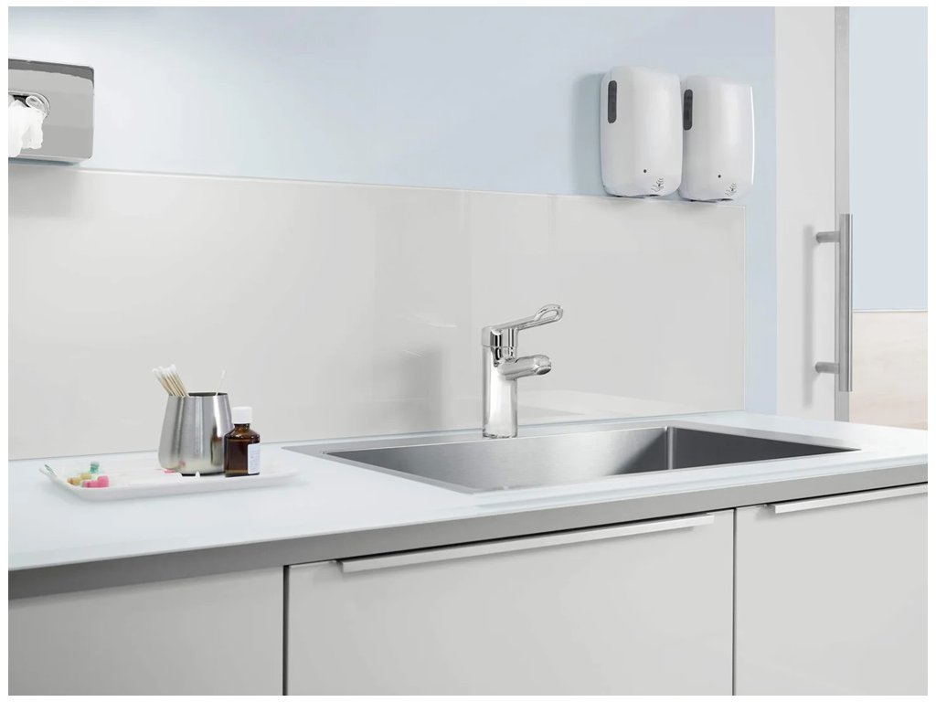 Hľadáte umývadlovú batériu, ktorá splní aj tie najvyššie požiadavky na hygienu a ergonómiu? Potom je pre vás umývadlová stojanková batéria HANSAMEDIPRO Protec značky Hansa ideálnou voľbou. Batéria je navrhnutá špeciálne pre zdravotnícke zariadenia s vysokými nárokmi na hygienu, bezpečnosť a spoľahlivosť: napríklad nemocnice, ambulancie, laboratóriá a podobne. Batéria je vyrobená z kvalitnej mosadze, jej vodné cesty sú bez poniklovania a povrchy, ktoré prichádzajú do styku s pitnou vodou, obsahujú menej ako 0,3% olova. Dlhšia, ergonomicky tvarovaná strmeňová páka zaručuje komfortné ovládanie, pokojne i len lakťom: to ocení nielen zdravotnícky personál, ale i pacienti s obmedzenou hybnosťou. Batéria Hansamedipro Protec sa nestratí ani v domácnostiach: vhodná je najmä pre ľudí so zníženou motorikou a pre seniorov. Batéria je vybavená perlátorom s laminárnym prúdom, ktorý poskytuje jemný a rovnomerný tok vody bez zbytočného a otravného rozstrekovania. Súčasťou batérie je tiež odtoková súprava s tiahlom, umožňujúca jednoduché ovládanie odtoku vody z umývadla. Elegantný chrómový lesk a moderné línie robia z batérie atraktívny doplnok, ktorý dodá vašej kúpeľni či prevádzke štýlový vzhľad.