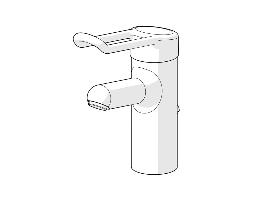 • dlhá strmeňová páka so symbolom teplej a studenej vody;