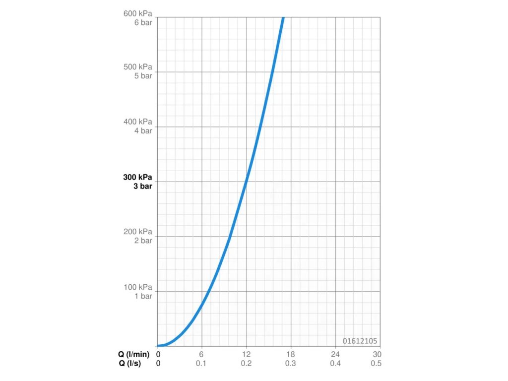 • prietok pri tlaku 3 bary (s obmedzovačmi prietoku): 12 l/min.;