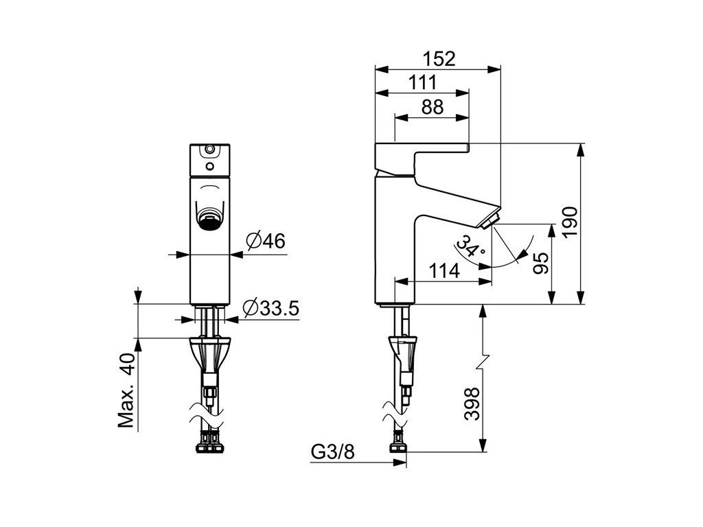 HANSAVANTIS - umývadlová stojanková vodovodná batéria s PIN-tyčinkovou pákou a pevným výtokovým ramenom. Bez odtokovej súpravy.