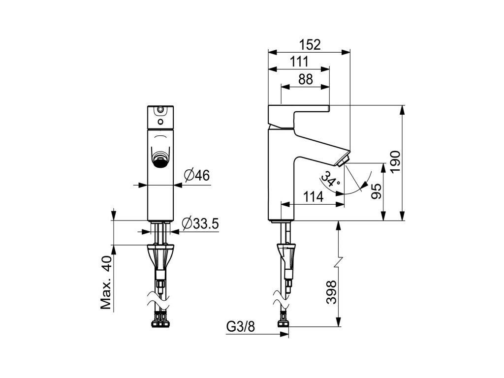 HANSAVANTIS ECO - umývadlová stojanková vodovodná batéria s PIN-tyčinkovou pákou a pevným výtokovým ramenom. Bez odtokovej súpravy.
