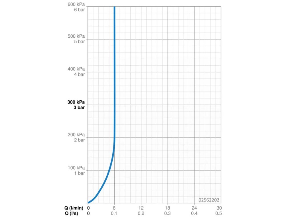 • prietok pri tlaku 3 bary (s obmedzovačmi prietoku): 6 l/min.;