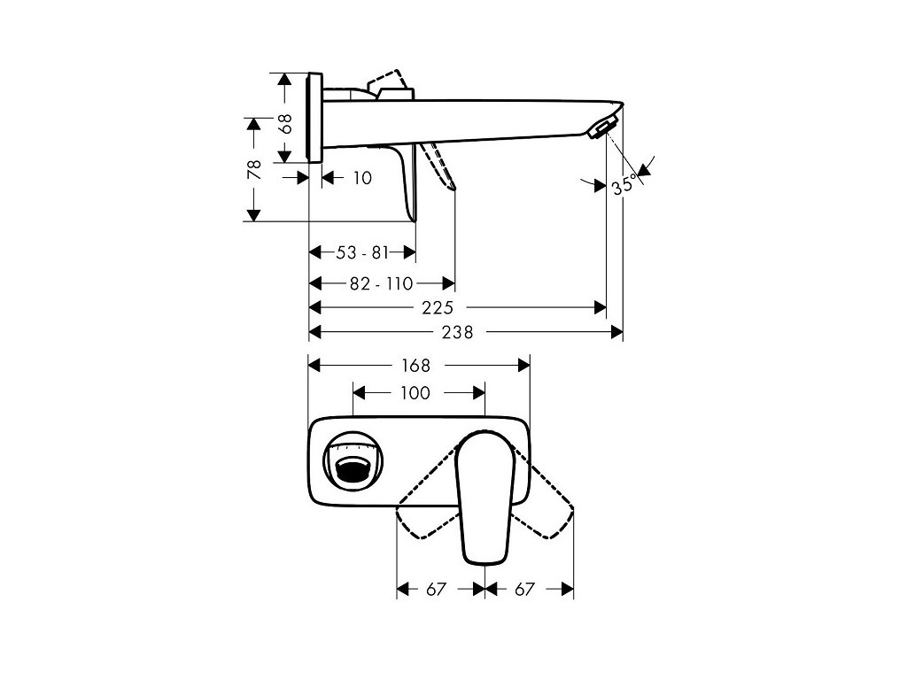 Páková umývadlová podomietková vodovodná batéria s výtokom TALIS E značky Hansgrohe. Rukoväť je možné namontovať vpravo alebo vľavo podľa inštalácie podomietkového telesa.
