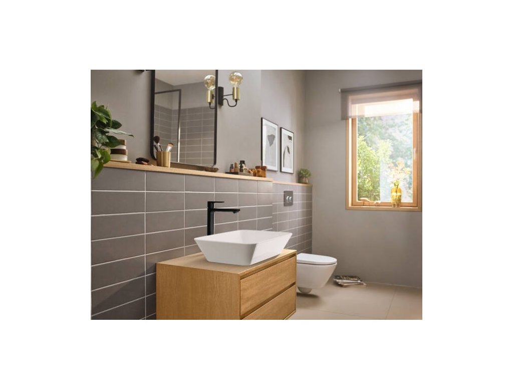 Preferujete ekologické riešenia? Hľadáte štýlovú umývadlovú batériu, ktorej prednosťou je efektívne využívanie vody a energií? Potom by vás mohla osloviť batéria REBRIS E značky Hansgrohe. S jej komfortnou výškou je skvelou voľbou pre umývadlové misy. Vďaka technológii studeného štartu "CoolStart" automaticky šetrí teplú vodu a energiu, čo je prospešné nielen pre vašu peňaženku, ale aj pre životné prostredie. Minimalistický dizajn batérie Rebris E kombinujúci oblé a hranaté tvary spolu s matným čiernym povrchom prinesie vašej kúpeľni moderný a elegantný nádych. Na prvý pohľad upúta pozornosť.