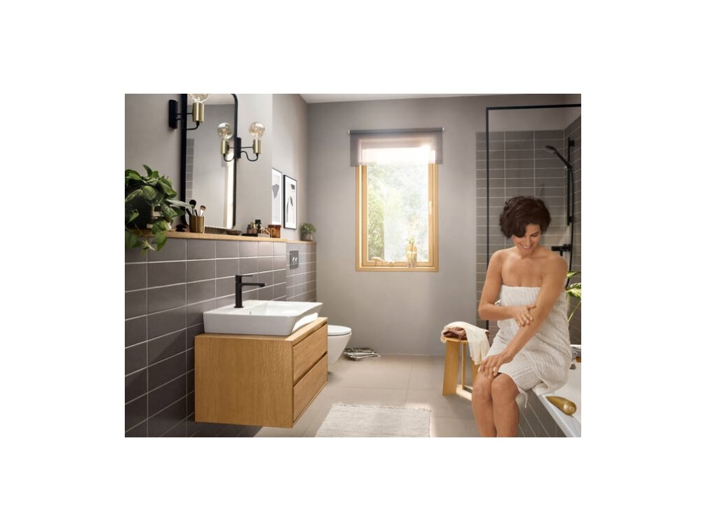 Elegantná umývadlová batéria REBRIS E značky Hansgrohe na prvý pohľad za upúta vďaka svojmu minimalistickému dizajnu, kde sa jemné, oblé krivky prelínajú s ostrejšími hranami. Jej pôvab zdôrazňuje matný čierny povrch. Vyššia výška zaručuje vyšší komfort používania. Batéria Rebris E nie je iba funkčným, ale aj estetickým doplnkom, ktorý vašej kúpeľni dodá moderný vzhľad. Batéria je opatrená odtokovou súpravou s tiahlom, s ktorou hravo uzavriete odtok vody.