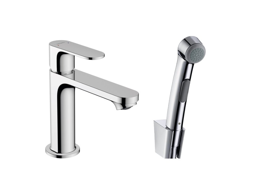 Čo všetko je súčasťou balenia? Umývadlová batéria REBRIS S, bidetová ručná sprška BIDETTE, nástenný držiak ručnej sprchy, sprchová hadica 1600mm.
