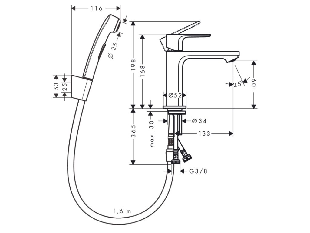 Umývadlová batéria REBRIS S s bidetovou sprškou a hadicou, čierna