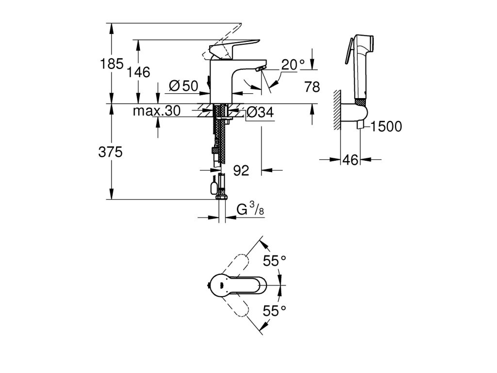 Umývadlová batéria s bidetovou sprškou BauEdge "S", chróm