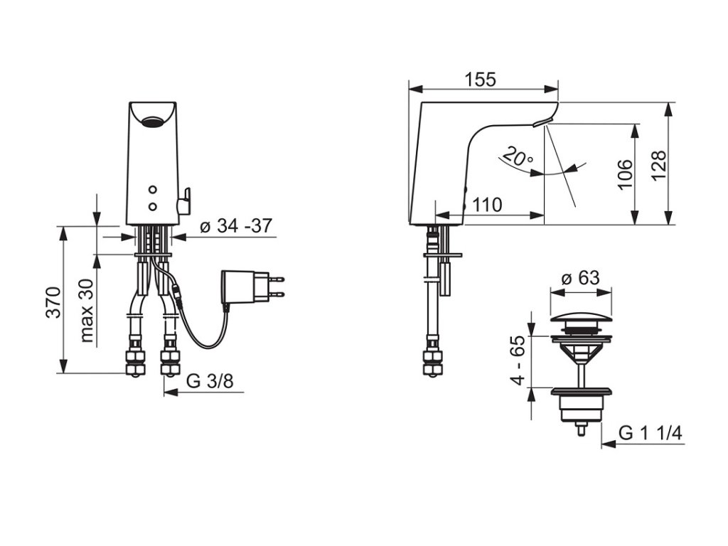 HANSALIGNA - umývadlová senzorová batéria s ovládacou rukoväťou pre reguláciu teploty vody. S tlačným uzáverom odpadu.