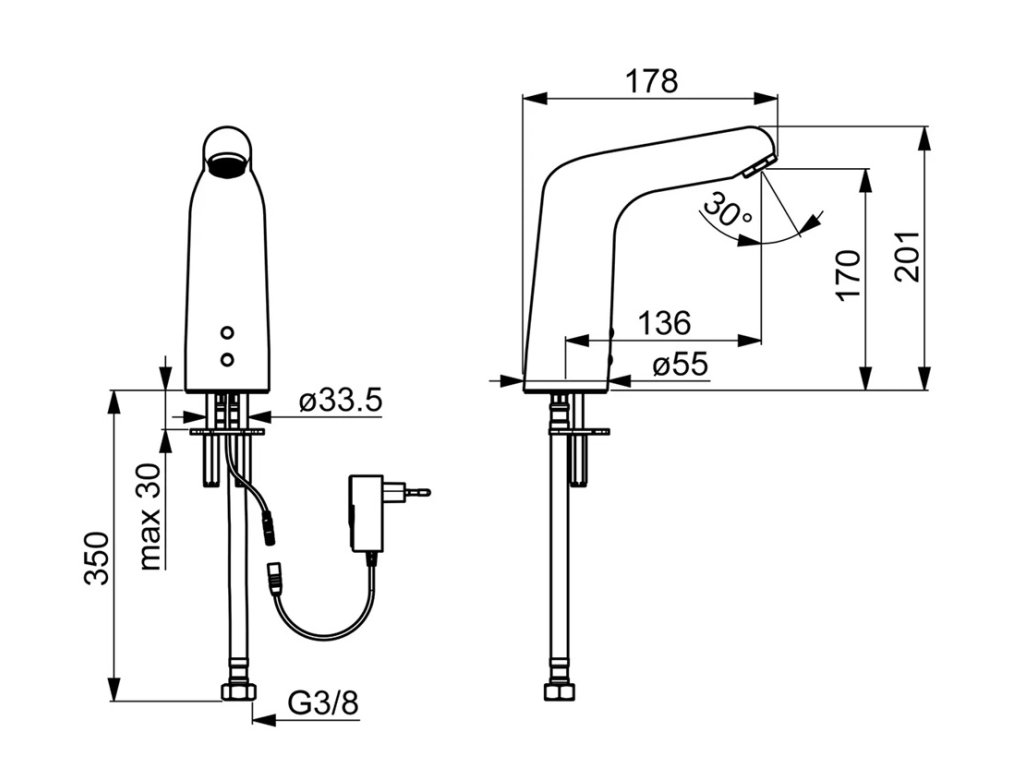 Umývadlová batéria senzorová HANSAMEDIPRO XL, sieťová prevádzka