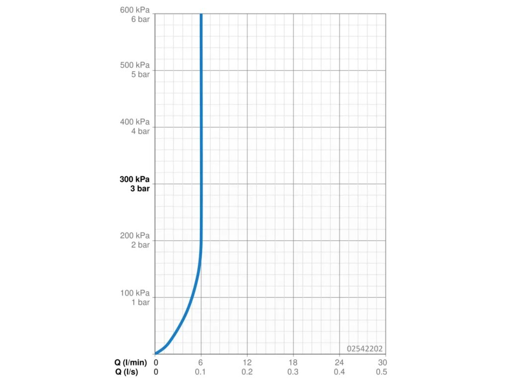 • prietok pri tlaku 3 bary (s obmedzovačmi prietoku): 6 l/min.;
