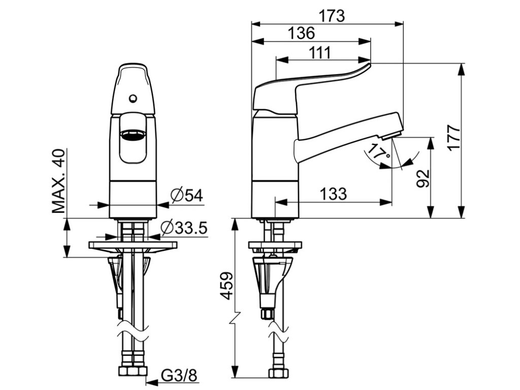 Umývadlová batéria stojacia HANSACARE bez odtokovej súpravy, chróm