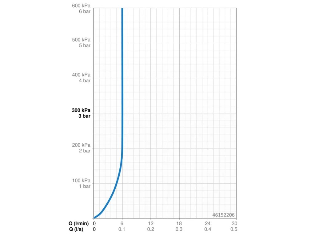 • prietok pri tlaku 3 bary (s obmedzovačmi prietoku): 6 l/min.;