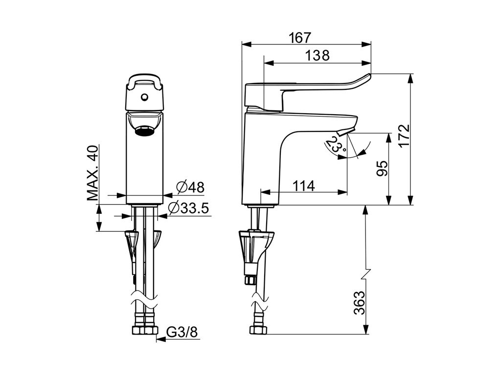 • pripojenie: flexibilné pripojovacie hadičky;