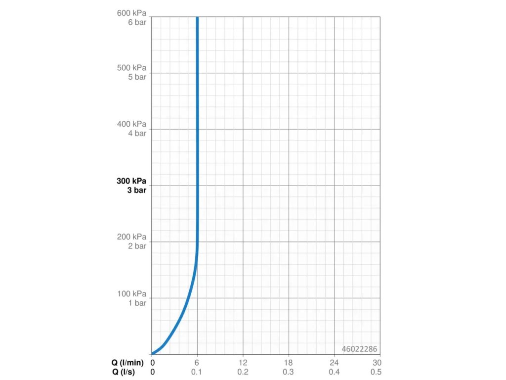 • prietok pri tlaku 3 bary (s obmedzovačmi prietoku): 6 l/min.;