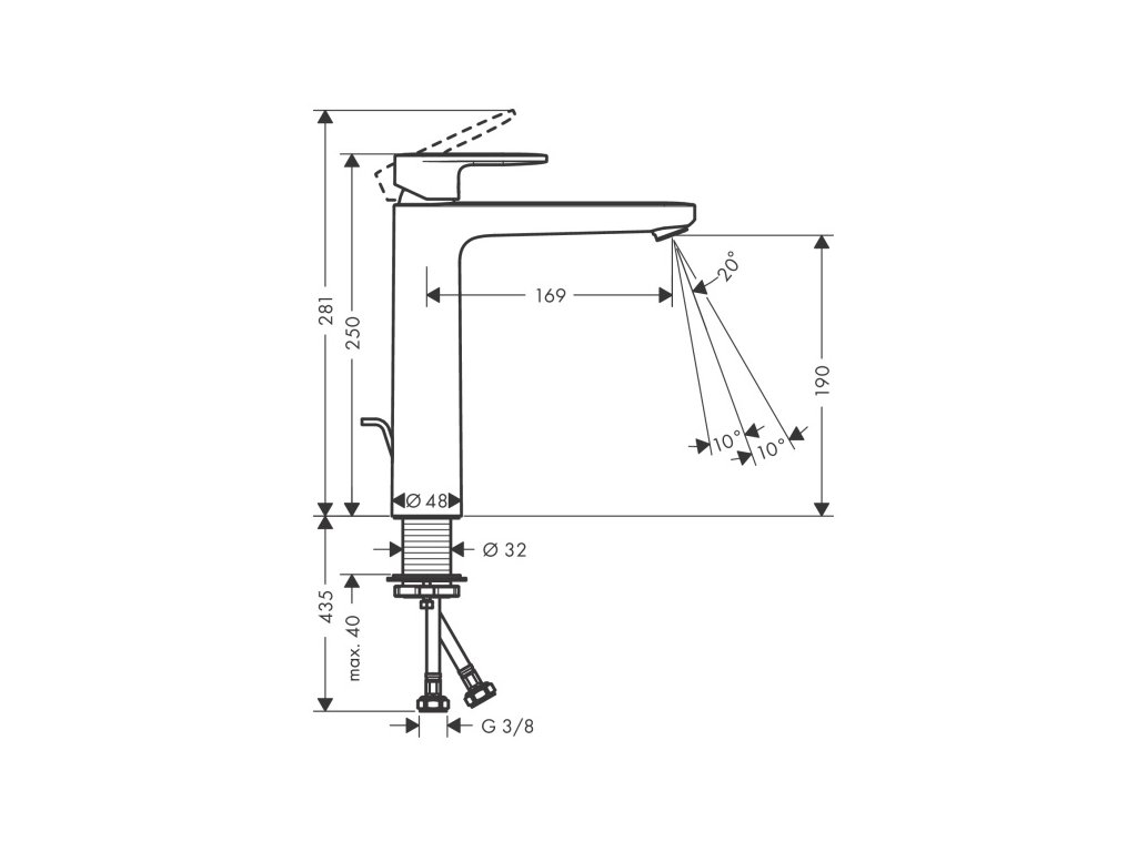 Umývadlová stojanková vodovodná batéria VERNIS BLEND značky Hansgrohe. Batéria je vyššia - hodí sa k umiestneniu k umývadlovej mise.