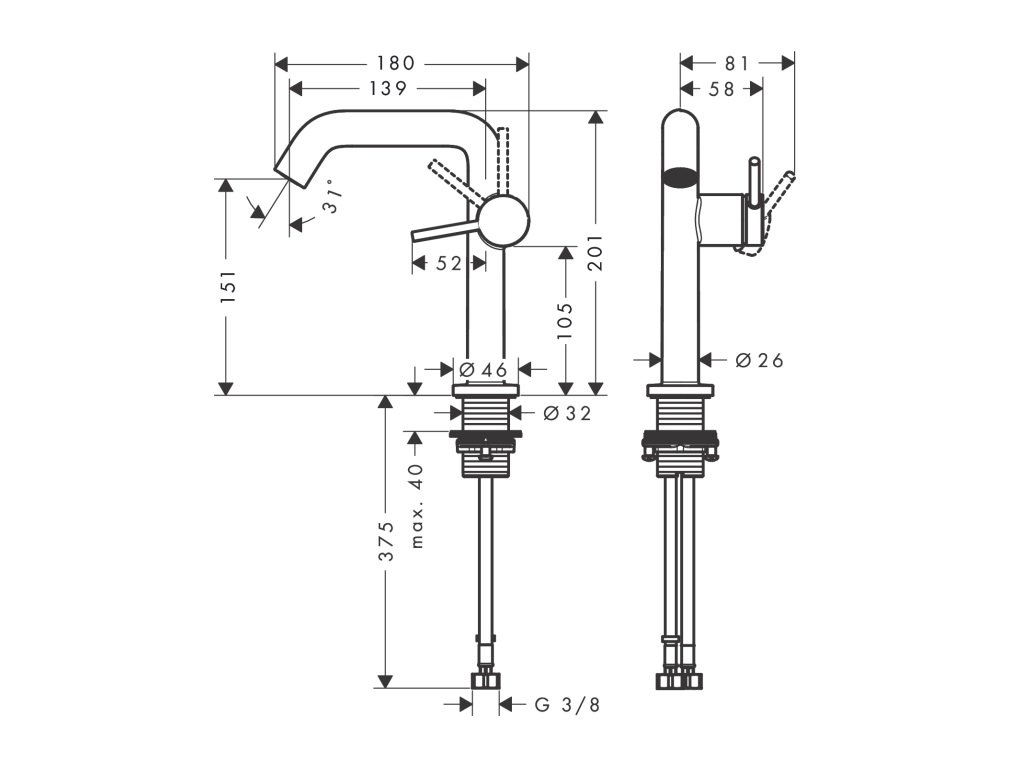 Umývadlová stojanková batéria TECTURIS S značky Hansgrohe.