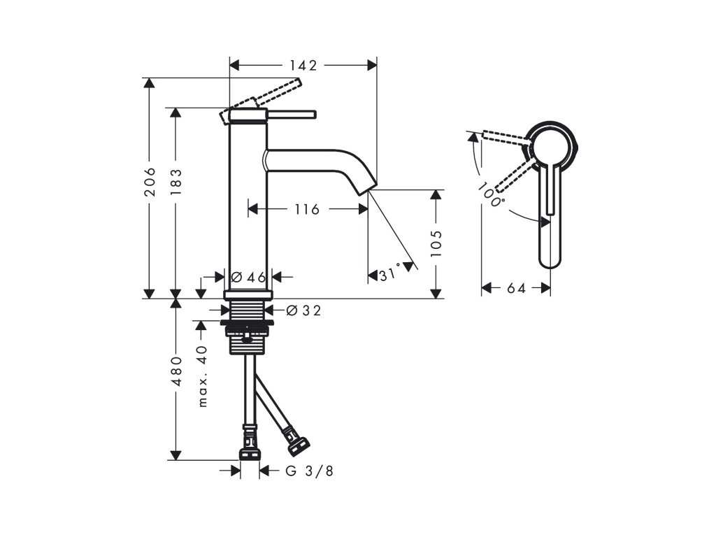 Výška výtoku: 105mm.