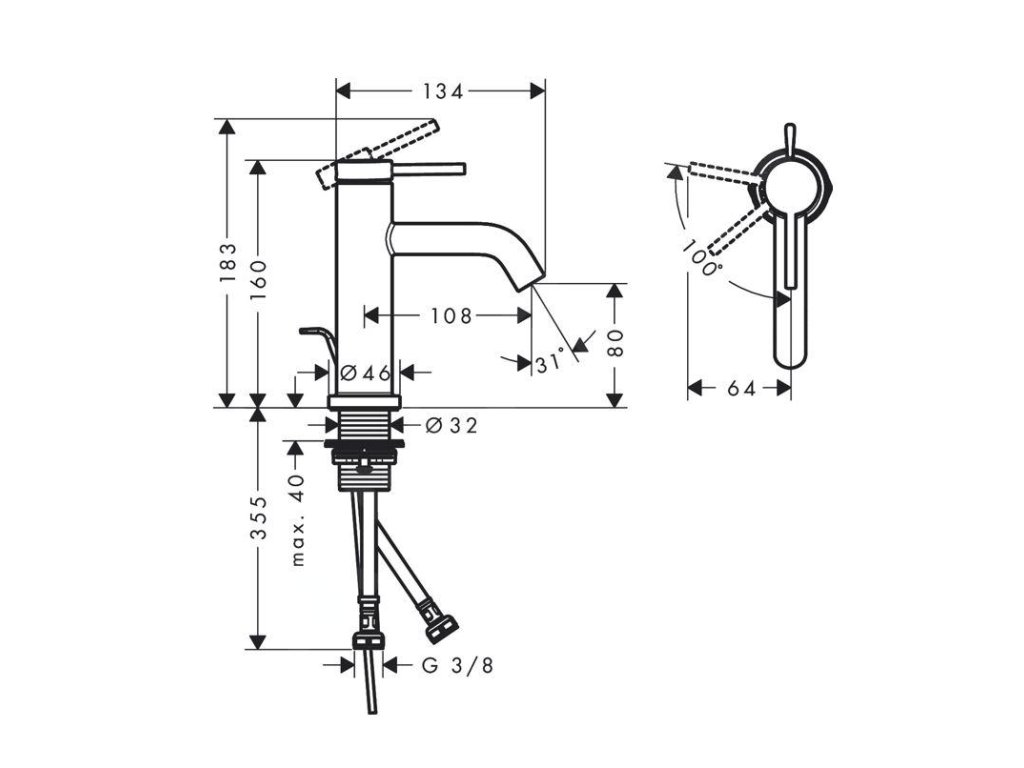 Umývadlová batéria TECTURIS značky Hansgrohe. S kovovou odtokovou súpravou.