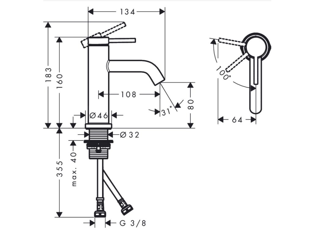 Výška výtoku: 80 mm.