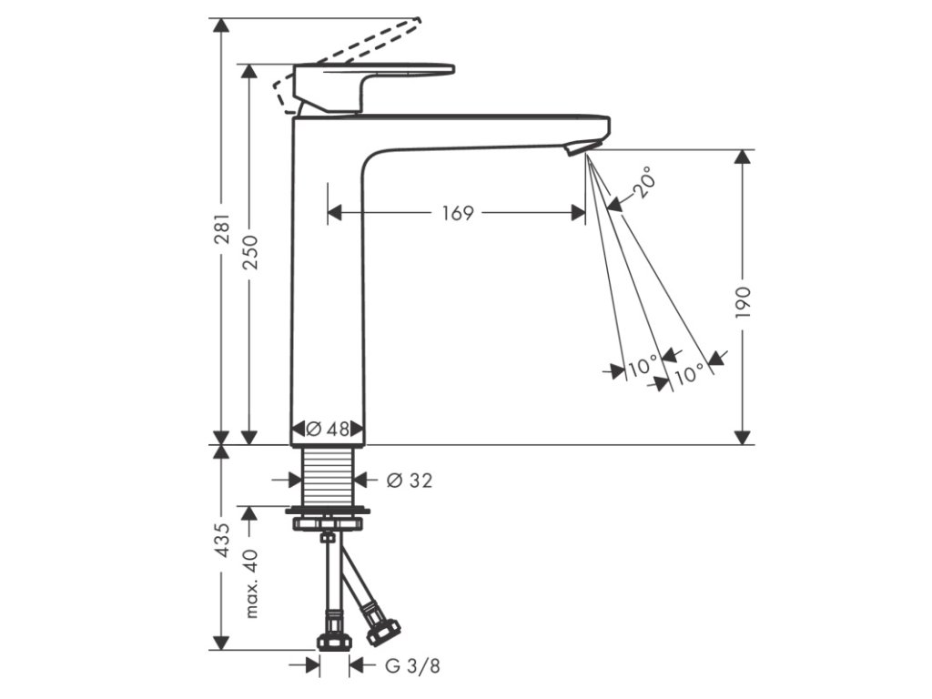 Páková umývadlová stojanková vodovodná batéria VERNIS BLEND značky Hansgrohe, bez odtokovej garnitúry.