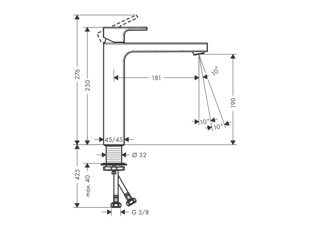 Vyššia umývadlová stojanková vodovodná batéria VERNIS SHAPE značky Hansgrohe, s výkyvným tvarovačom prúdu.