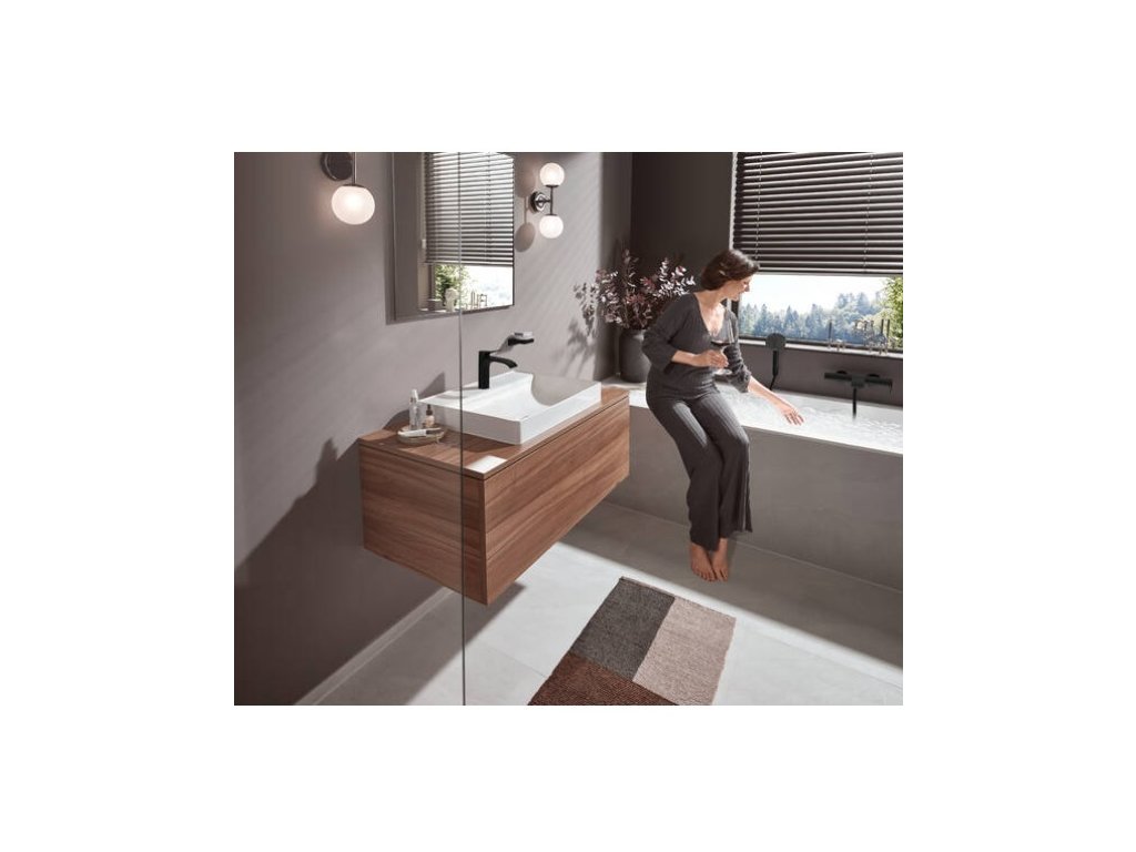 Milujete moderný dizajn? Potom si nepochybne zamilujete umývadlovú batériu VIVENIS od Hansgrohe. Táto elegantná stojanková batéria premení vaše umývadlo na dizajnový kúsok a spríjemní vám každodennú hygienu. Jemný vodopádový prúd WaterfallStream dodá pocit luxusu aj pri tak bežnej činnosti ako je umývanie rúk. Matná čierna farba batérie a ostré hrany vkusne kontrastujúce s oblými líniami vnesú do vašej kúpeľne kus nadčasovosti.