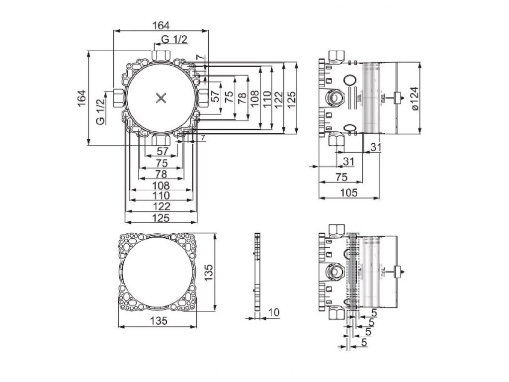 Podomietkové diely: tesniace púzdro pre suchú inštaláciu, montážna krabica, krycia objímka, upevňovací systém Multifix.