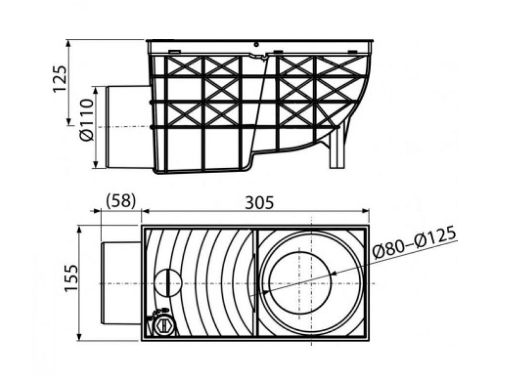 Univerzálny lapač strešných splavenín 300×155/110 mm bočná, čierna