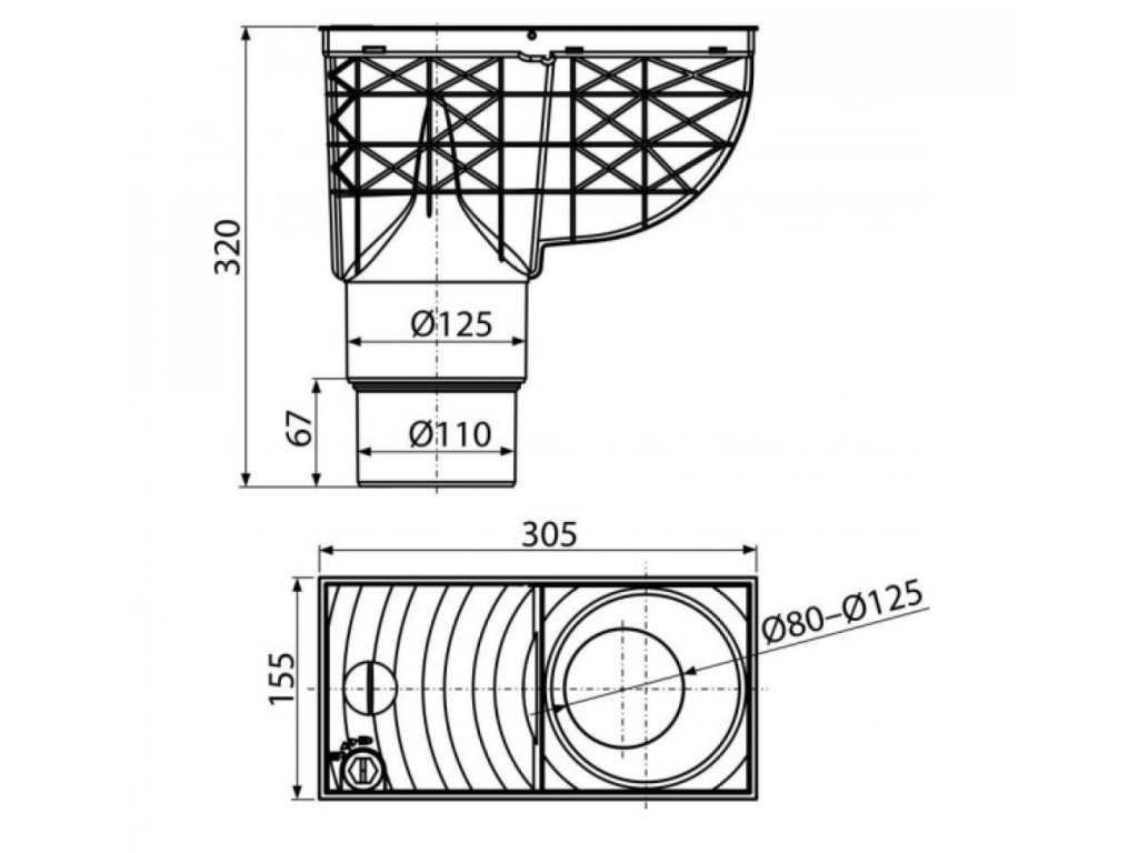 Univerzálny lapač strešných splavenín 300×155/125/110mm priamy - šedý