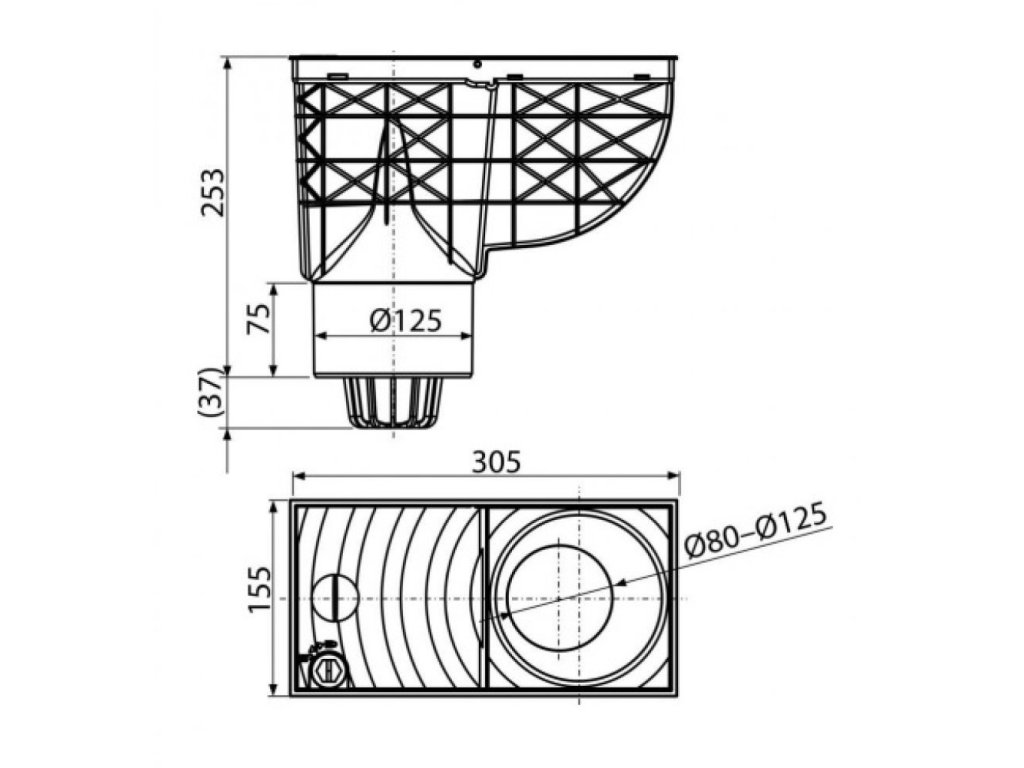 Univerzálny lapač strešných splavenín 300×155/125 mm priamy, čierna