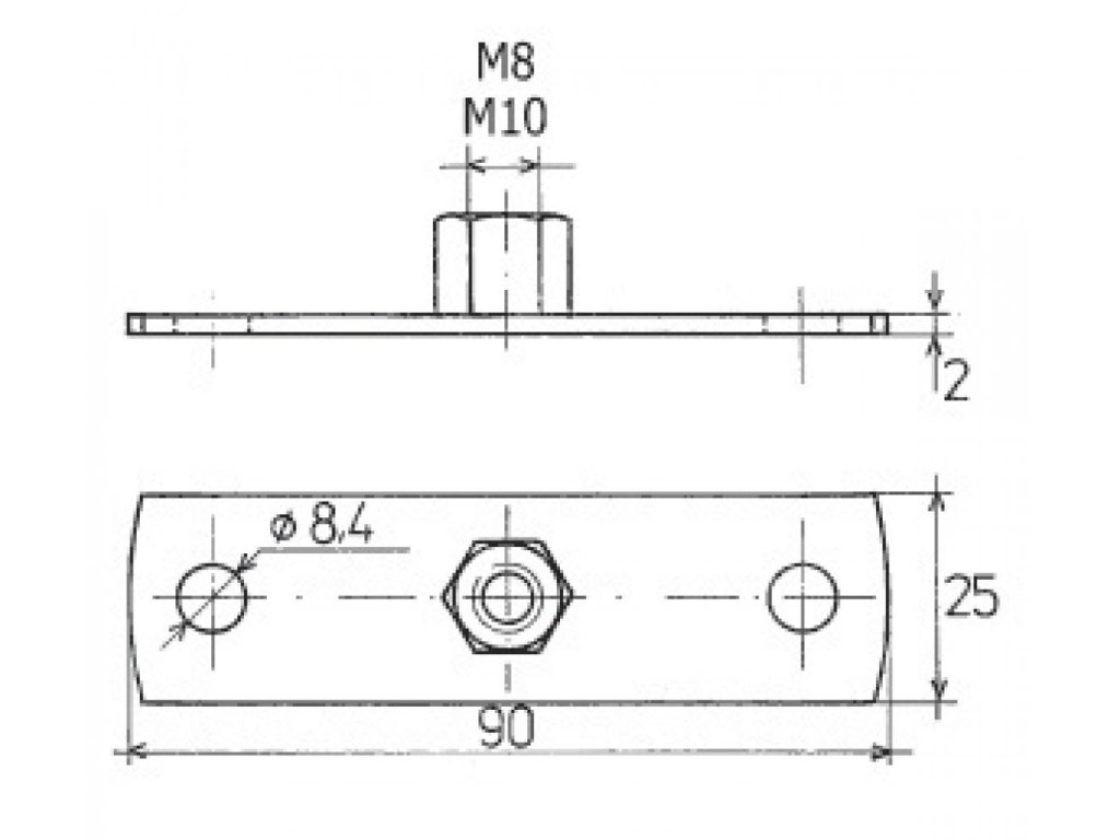 Upevňovacia doska pozinkovaná - M8, 90x25mm