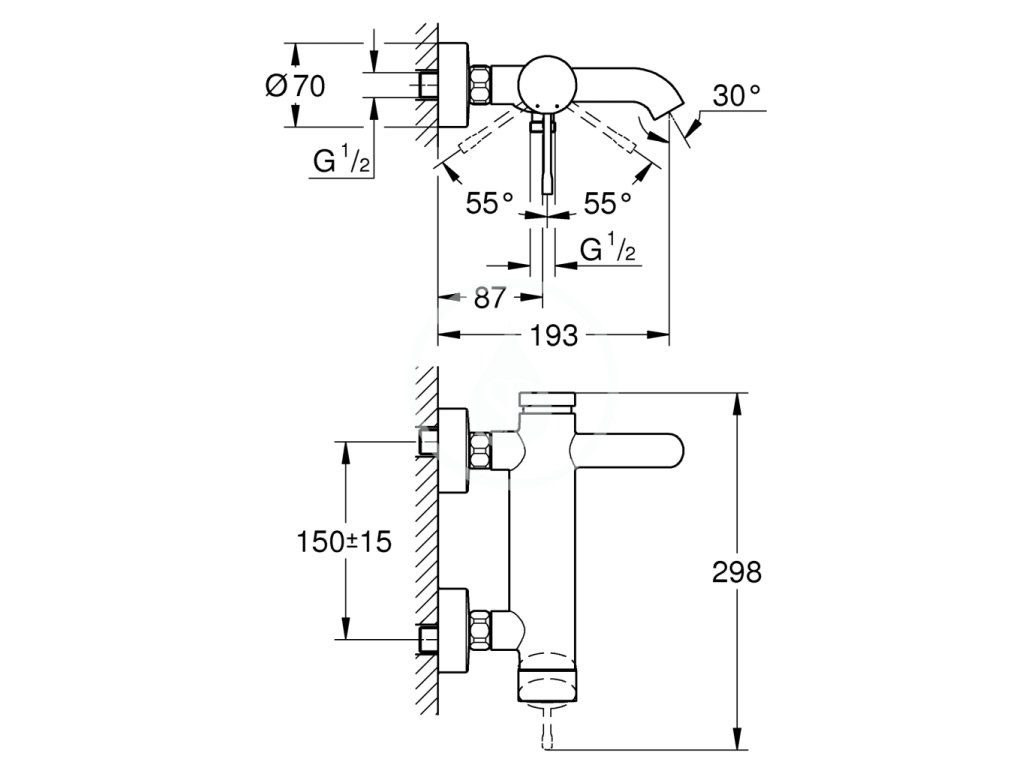 ESSENCE páková stenová vodovodná batéria pre vane.