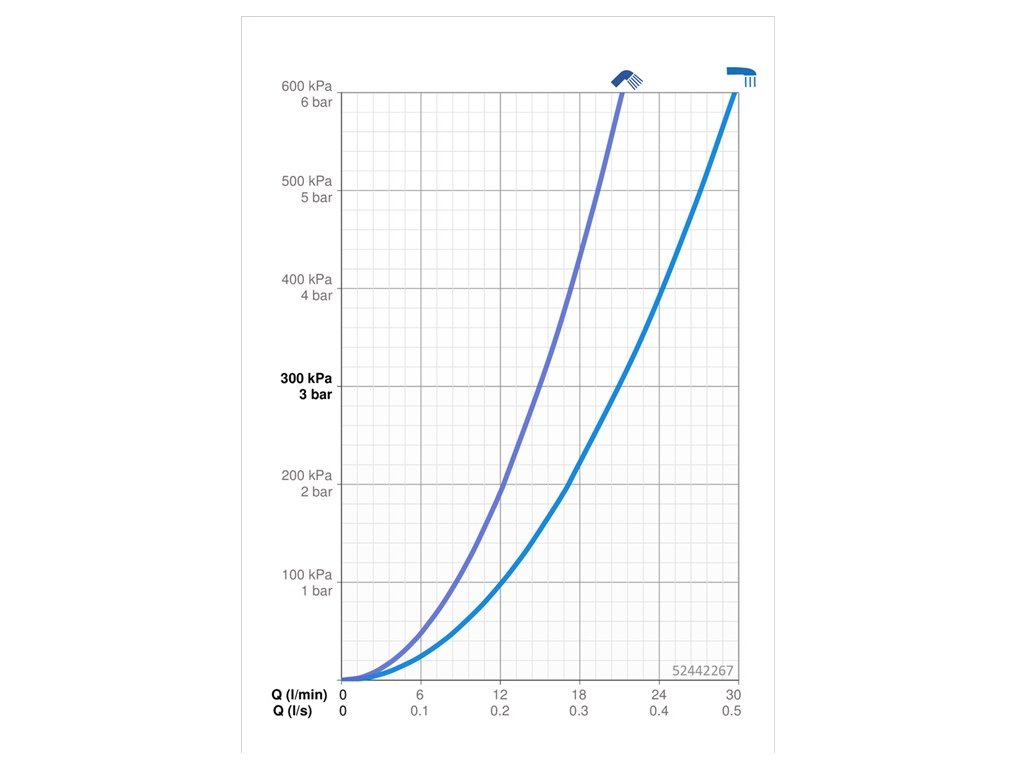 Prietok meraný pri hydraulickom tlaku 3 bar (vaňa/sprcha): 21 l/15 l/min.