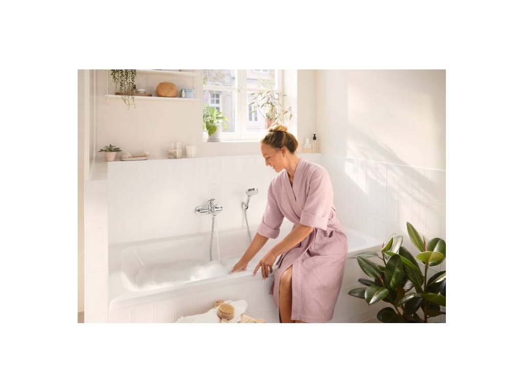 Doprajte si jemný dotyk vody a dizajn, ktorý osvieži vaše zmysly. Vaňová batéria REBRIS S značky Hansgrohe nie je len obyčajnou batériou: je spojením funkčnosti a elegancie v duchu moderného minimalizmu. Oblé tvary kombinované s ostrejšími hranami a lesklý chrómový povrch umožnia batérii vo vašej kúpeľni zažiariť a dodajú jej nadčasový vzhľad. Dizajn bez zbytočných ozdôb osloví aj tých najnáročnejších. Prepínač vám umožní pohodlne prepínať medzi vaňou a sprchou a tak si môžete naplno vychutnať osviežujúcu sprchu alebo si dopriať relaxačný kúpeľ.