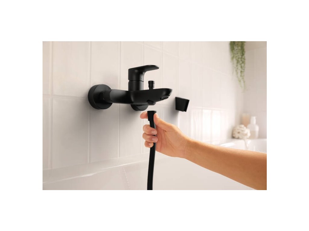 Doprajte si jemný dotyk vody a dizajn, ktorý oživí vaše zmysly. Vaňová batéria REBRIS S značky Hansgrohe nie je len obyčajnou batériou, ale spojením funkčnosti a elegancie v duchu moderného minimalizmu. Oblé tvary kontrastujúce s ostrejšími hranami a matný čierny povrch umožnia batérii zažiariť vo vašej kúpeľni a dodajú jej nadčasový look. Dizajn bez zbytočných ozdôb osloví aj tých najnáročnejších zákazníkov. Prepínač vám umožní pohodlne prepínať medzi vaňou a sprchou a tak si môžete naplno vychutnať osviežujúcu sprchu alebo si dopriať relaxačný kúpeľ.
