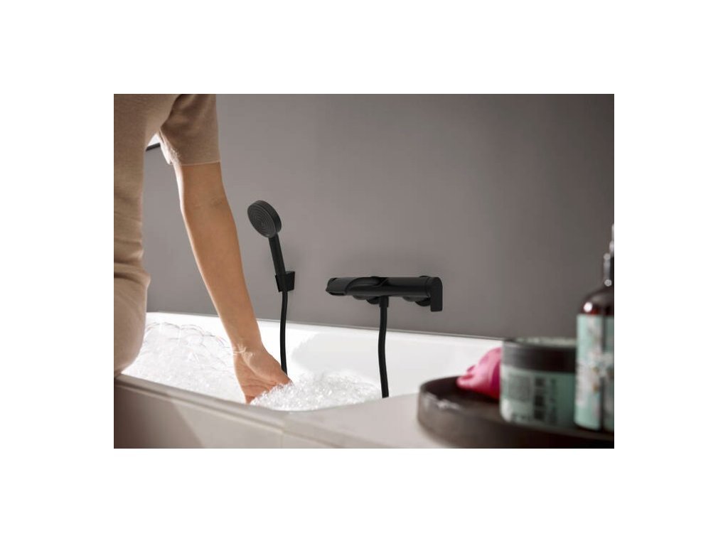 Túžite po kúpeľni, ktorá bude odzrkadľovať váš moderný štýl a zmysel pre detail? Potom si nenechajte ujst vaňovú batériu VIVENIS od Hansgrohe. Zaujme vás už na prvý pohľad: jej oblé tvary vkusne kontrastujú s ostrými hranami. Matná čierna farba vnesie do vašej kúpeľne kus elegancie a štýlu. Vodopádový prúd WaterfallStream dodá pocit luxusu a relaxácie pri kúpaní. Batéria je vybavená prepínačom Select, ktorým ľahko prepnete prúd vody medzi vaňovým výtokom a sprchovou hadicou.