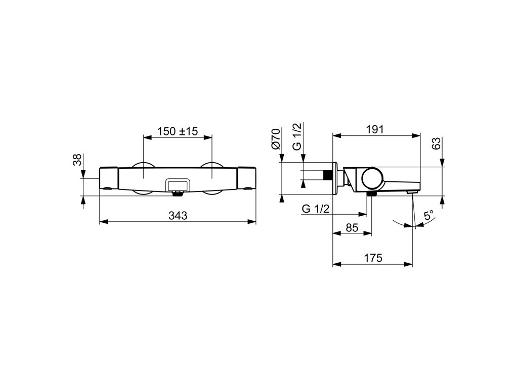 HANSAOPTIMA - vaňová termostatická batéria značky Hansa s pevným výtokovým ramenom s CASCADE® - aerátorom.