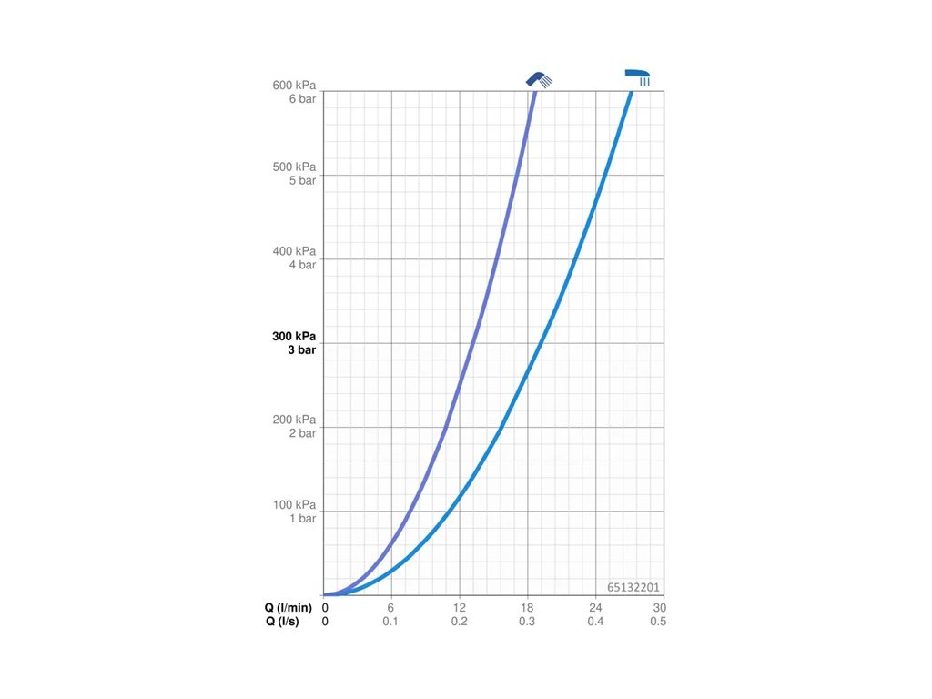 Prietok meraný pri hydraulickom tlaku 3 bar (vaňa/sprcha): 19,2 l/13,2 l/min.