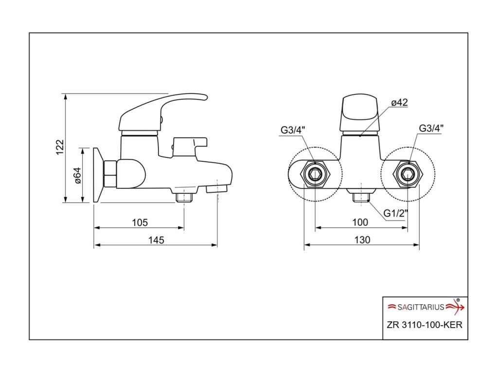 Nástenná vaňová batéria ZORA značky Sagittarius, dodávaná bez sprchového príslušenstva.