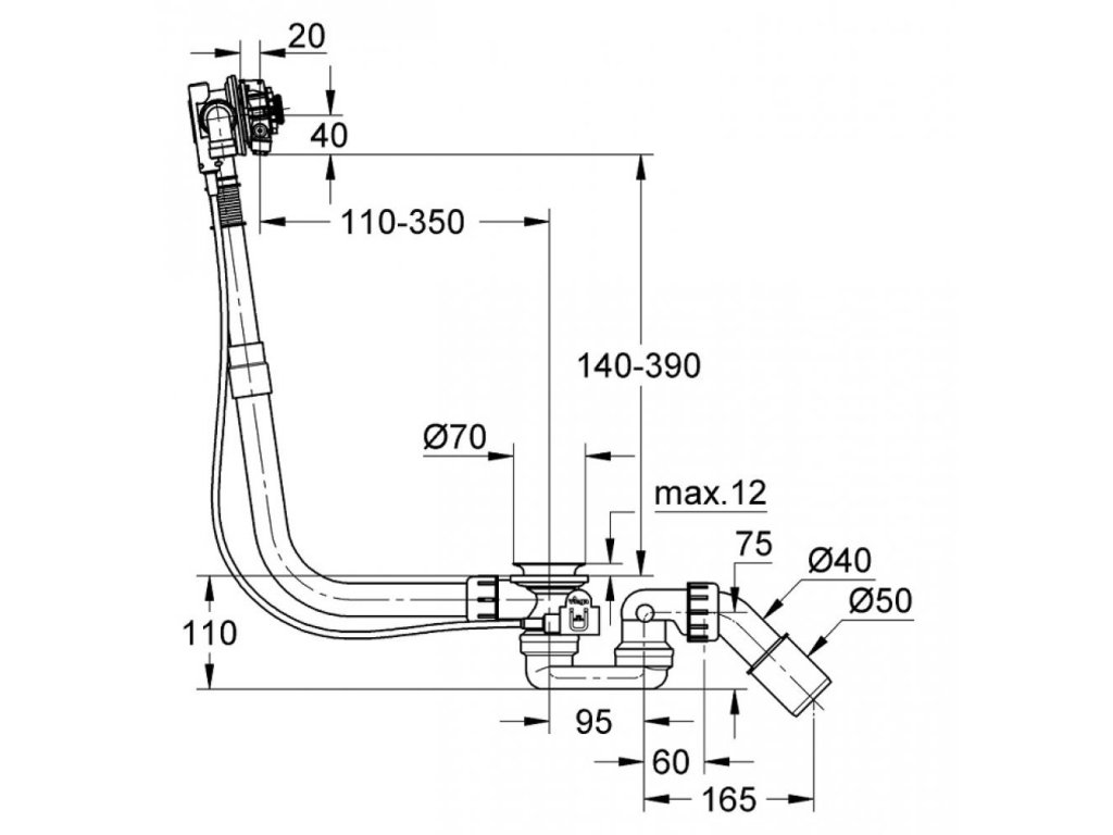 Vaňový sifón automat komplet - spodný diel Talentofill