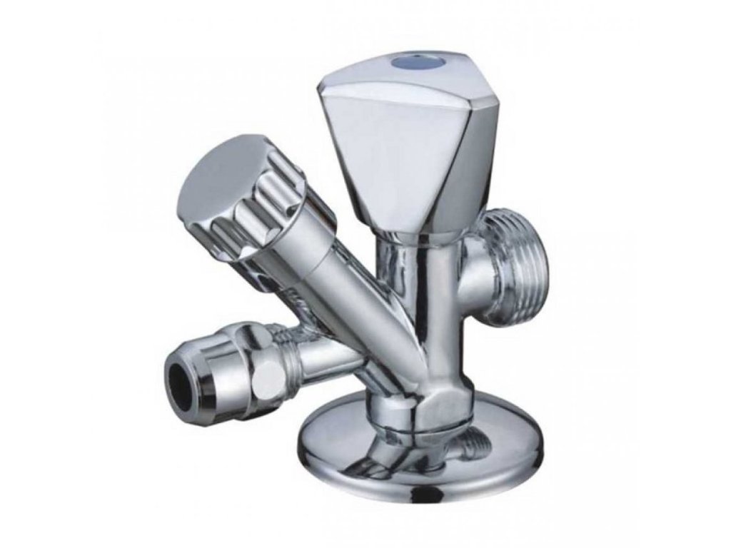 Rohový kombinovaný guľový ventil značky Aquaristo, 1/2"x 3/8"x 3/4".