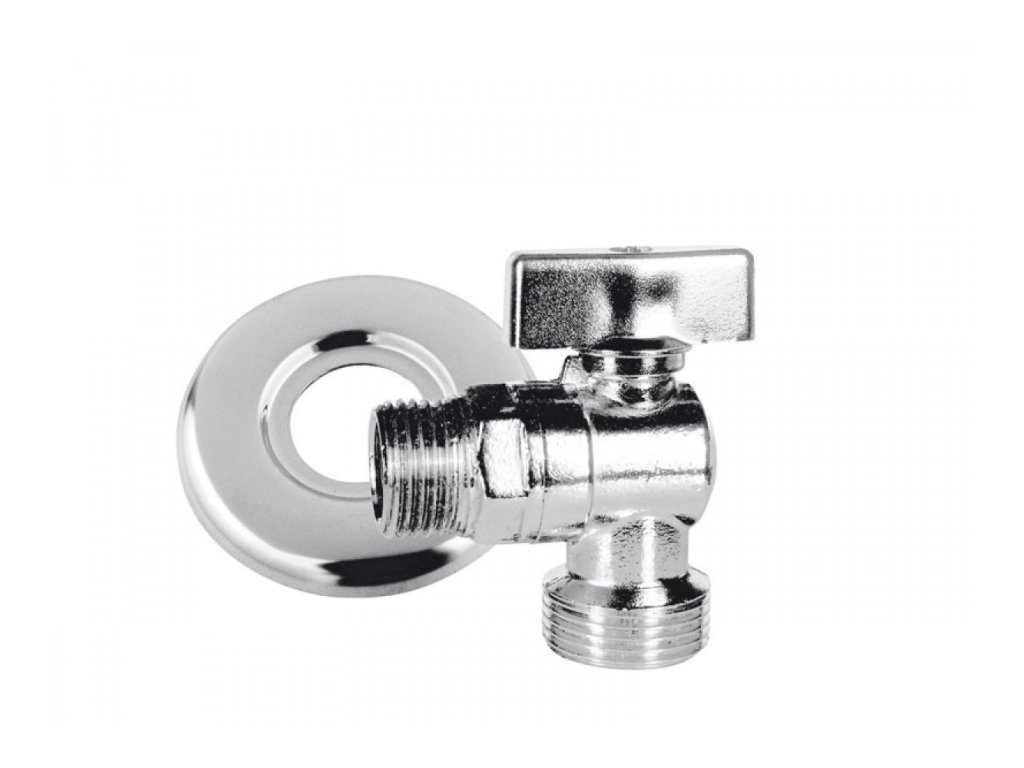 Práčkový rohový guľový ventil so spätnou klapkou a krytkou, krátky 1/2"x 3/4". V chrómovej povrchovej úprave.