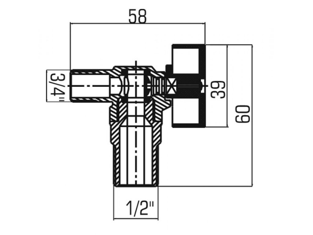 Guľový ventil rohový s krytkou, 1/2"x 3/4", chróm