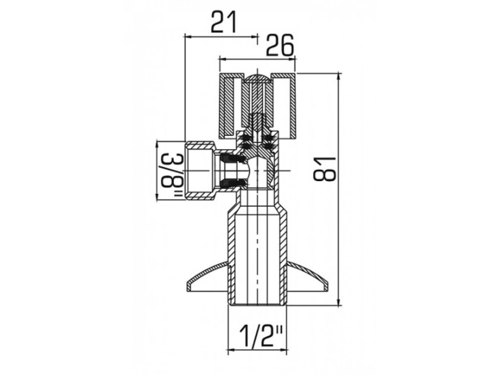 Rohový ventil vretenový s krytkou, 1/2"x 3/8", chróm