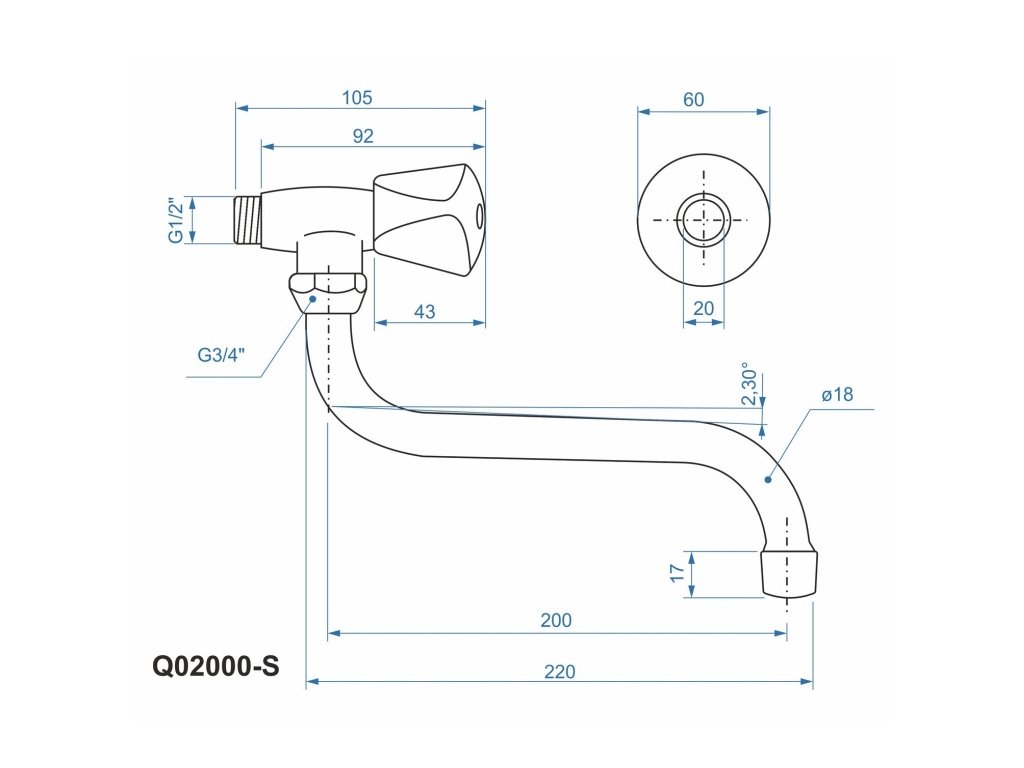 Stenový výtokový ventil s výtokovým ramienkom tvaru "S", 1/2" vršok.