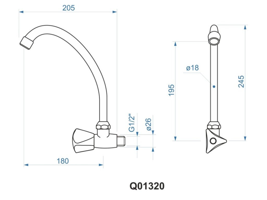 Ventil výtokový nástenný s horným ramenom, 1/2" vršok